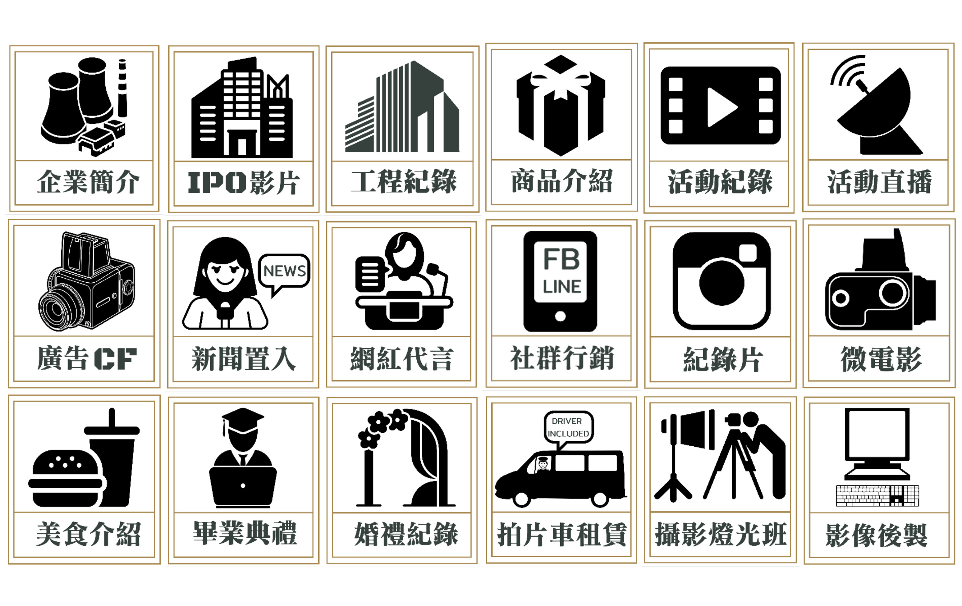 專業提供 IPOt影片、工程紀錄、工商簡介與廣告CF製作,結合YouTube與LINE行銷,涵蓋工商攝影、活動錄影、美食攝影與短影
